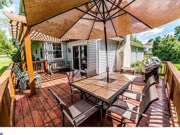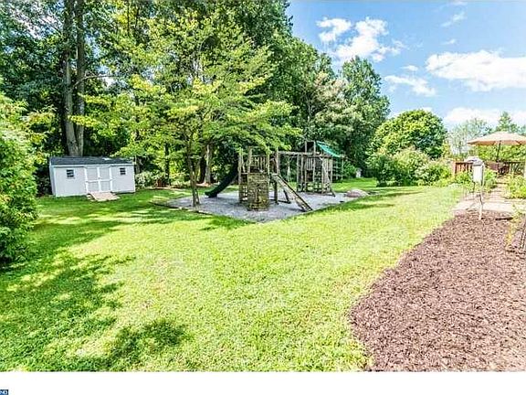 Very comfortable colonial with so many pluses. This home owner has had house pressure washed, seal coated driveway, freshly painted main floor, three of the second floor bedrooms remain the happy decor of their occupants. Freshly painted garage door and shed. The deck has also been sealed. The deck backs to woods for privacy, the shed and play set and sand box are included with the house. There is a keyless entry for those who misplace keys. There are double pane tilt in Pella windows in entire house. Bosch front loading washer and dryer and Samsung fridge in kitchen with extended warranty. Also programmable thermostat helping to maintain utility costs. The kitchen has Pergo flooring , solid cherry cabinets with a custom made bench with storage in kitchen nook. Sliders to deck. Very nicely sized L/R with carpet, and F/R with brick F/P (wood burning),laundry room on first floor also powder room. The basement is finished with lots of storage, plus built in bench with storage. This home is immaculate. Front yards with flower beds and a fountain. Convenient location for roads, trains and shopping. Free one year home warranty to buyer. No HOA fees.