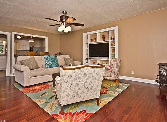 Location, location, location! Immaculate updated one-level living home, gorgeous Brazil cherry hardwood and tile floors, built-ins, cozy free-standing gas stove, serving bar kitchen, private deck and balcony in back, fenced backyard, large basement, walk to UNCA and Merrimon Ave shops and restaurants.