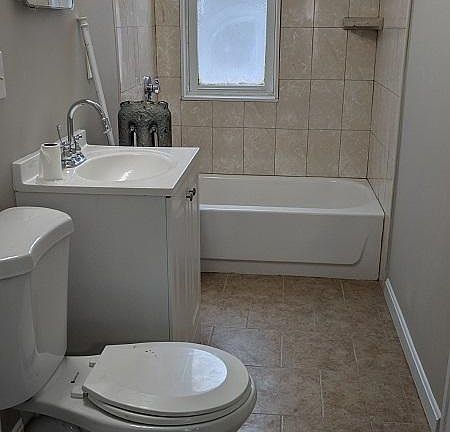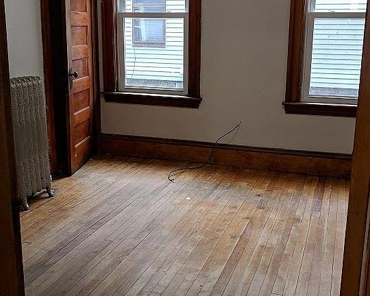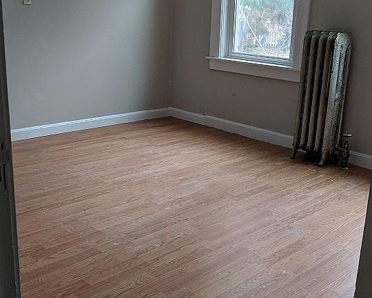Spacious 4 bedroom apartment with updated kitchen white cabinets and appliances. This first floor unit has hardwood floors, a private front porch and a formal dining room. Gas heat. On-street parking. Cats okay, no dog and no smoking.
