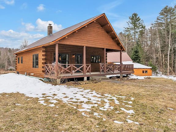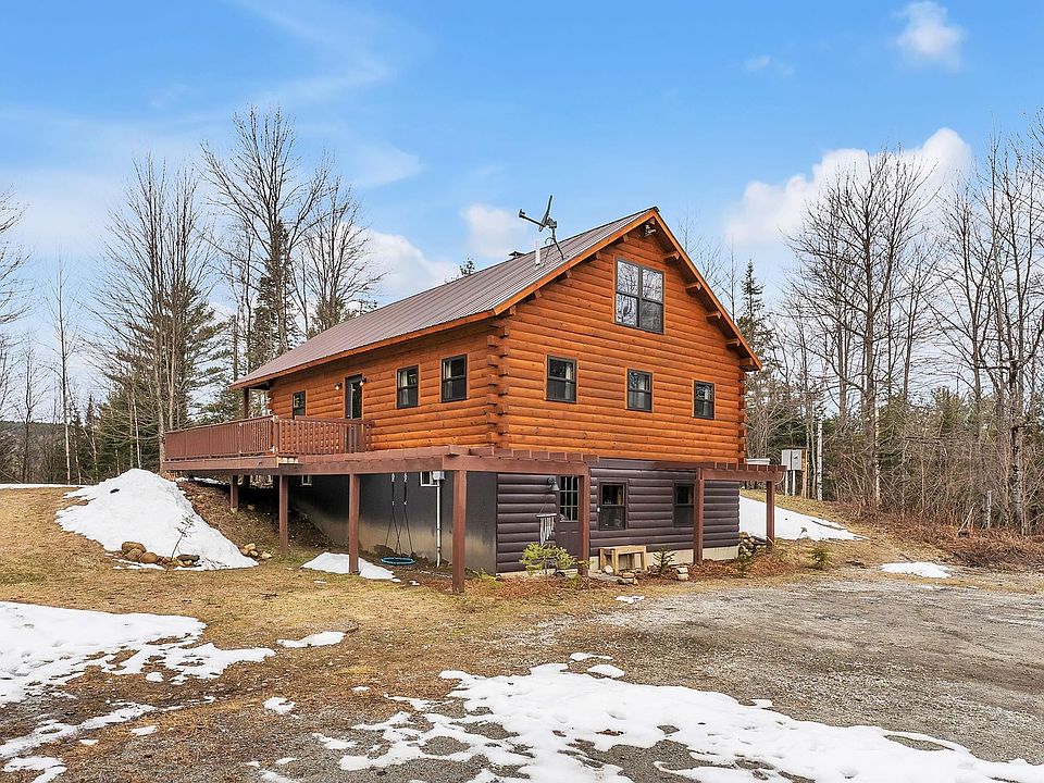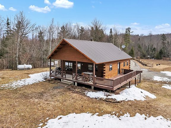 Introducing a stunning three-bedroom, two-bathroom log cabin nestled on an expansive 28-acre property on a private dead-end road. Upon arriving at the property, you are immediately greeted by the captivating appeal of the log cabin, emanating a sense of warmth and character. Walk into the newly finished basement, complete with new flooring, ceiling and a brand new woodstove. The downstairs has a large multi-purpose room, a 3/4 bathroom, a laundry room, and a large storage room. The main level features an open floor plan that seamlessly integrates the living, dining, and kitchen areas, creating a welcoming space for both relaxation and entertainment. There are also two spacious bedrooms and a full bathroom. The beautifully crafted hardwood floors, exposed wooden beams, highlight the traditional log cabin aesthetic, while many windows invite an abundance of natural light and provide picturesque views of the surrounding landscape. On the second level there is a large primary bedroom as well as an open loft area. There is also a two car detached garage, with plenty of storage above and an attached pole barn equipped with small animal stalls. From towering trees to cleared lawn space, this breathtaking landscape offers endless possibilities for outdoor activities and exploration.