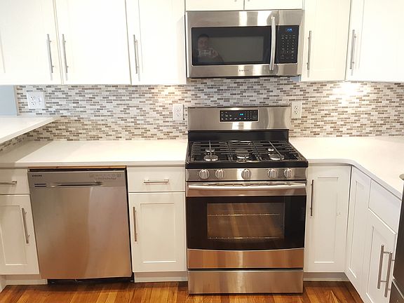 Gut renovated 3BR/2BA in a 2-family in East Watertown, available NOW! Sunny 2nd floor unit with central air, gleaming hardwood floors, and a beautiful kitchen featuring stainless steel appliances, white quartz counters, custom cabinetry, tile backsplash, and breakfast bar. French doors separating the dining area and living room. Modern baths with sleek finishes. Stacked Washer/Dryer in-unit. New high-efficiency gas heating system. Private front and rear balconies. Shared backyard. Pets OK with a full security deposit (non-aggressive breeds only). Driveway parking for 2 cars (back-to-back). Perfectly situated on a quiet side street on the border of East Watertown and Cambridge. 10-minute walk to Mt. Auburn St. for the 71 Bus to Harvard Square and to Arlington St. for the 70 Bus to Central Square. Minutes from Star Market, Target, Watertown Square, Mt. Auburn walking/biking trails, and countless shops and restaurants. Easy access to the Mass Pike and downtown Boston! Contact Lee Bedar to schedule a showing: lee@longwoodresidential.com or 617-645-1467 First Month, Last Month, and One Month Broker Fee (additional security deposit required for tenants with pets)
