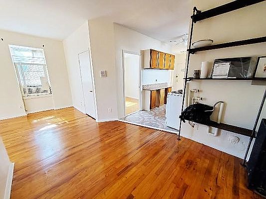 It's a walk-up 3rd floor unit. 800 sqft, 2-Bedroom,1 Office/small bedroom with 1 bathroom containing 8 windows which bring in plenty of sunlight. Spacious living room with a modest kitchen and a dining room that's great for entertaining guests. The building has free laundry in the basement and space for a bicycle/scooter. Tenant pays for their own utilities. Pet Friendly. The G train station is around the corner on Bedford-Nostrand Ave stop. Broker fee is negotiable.