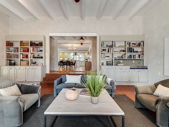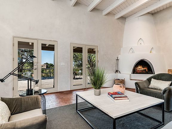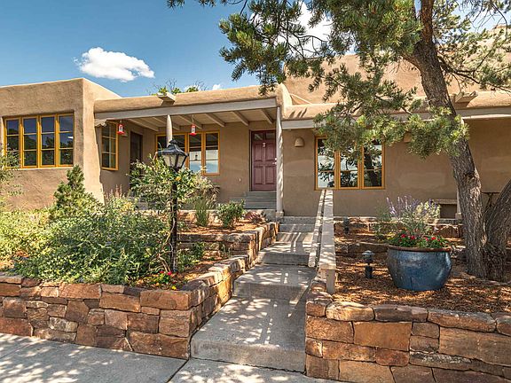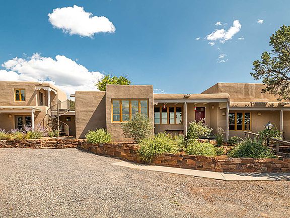 This unique property responds to the current market desires for lots of room, large yard to wander, awesome panoramic views and a work space/zoom room sequestered from the hustle & bustle of everyday home life. With form and function seamlessly integrated, the sense of a relaxed elegance is promoted by the dwelling's creature comforts: tall ceilings, single-level open plan layout, large windows, natural materials, and strategically placed outdoor living areas. Contemporary touches, seen in the selections of materials, finishes, and fixtures, are balanced with the acknowledgement given toward "Santa Fe charm" through the use of plaster wall finishes, brick & wood flooring materials, exposed beams and wandering corners at door and window openings. Extensive renovation was completed late 2010 by the owner/architect, with the kitchen replaced late 2014. The main house, detached office, and detached studio apartment offer five bedrooms, five baths, three fireplaces and ten skylights. Interior steps at living room. Studio apartment has great rental history to St. Johns graduate students. Non smoking environment. See the attached Property Features paper in "Documents" for an expanded summary of the property's characteristics. This is an exceptional property and will appeal to the most discerning buyer looking in the $1,200,000 budget range.