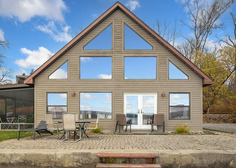 LEVEL LAKEFRONT year round solid quality contemporary home on double lot offers sweeping views of Cayuga Lake! Open floor plan with cathedral ceilings is complemented by top to bottom windows offering amazing stunning views from all angles. Spacious screened porch is incredible and the front patio is equally inviting for enjoying this wonderful gem in this special setting. Main level bedroom and spacious bath and an upper level loft with private bath and balcony with expansive stargazing opportunities. Dock, boat hoist, storage shed and if desired fully furnished wraps up this lake package very nicely. A must see!