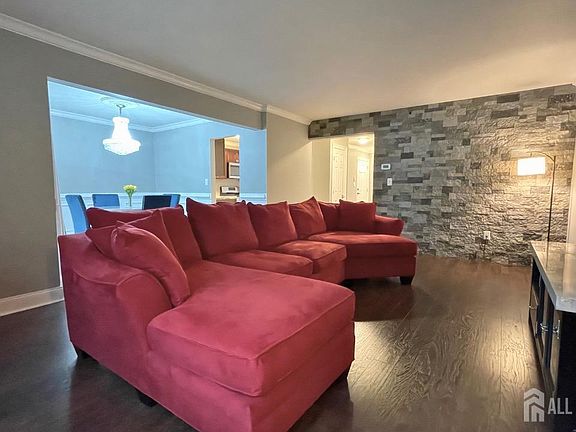 Welcome to this beautifully updated first-floor condo in the highly sought-after Lake Estates community. This charming home boasts beautiful floors, crown molding, and a living room with a beautiful stone accent wall. Step through the inviting foyer into a spacious living room that flows seamlessly into a gourmet, eat-in kitchen fully equipped with stainless steel appliances. The formal dining room features wainscoting and an elegant crystal chandelier, with sliding glass doors that open to a private patio - perfect for outdoor relaxation. The generously sized bedroom and stylish main bath complete this home. Residents also have access to a refreshing outdoor pool, perfect for summer days. Conveniently located just a few blocks from NYC buses and offering easy access to major routes, including Rt 18, Rt 1, and the NJ Turnpike. You're minutes from Downtown New Brunswick, Rutgers University, top-rated hospitals, as well as abundant shopping, dining, and recreational options. Plus, benefit from East Brunswick's award-winning Blue Ribbon Schools!