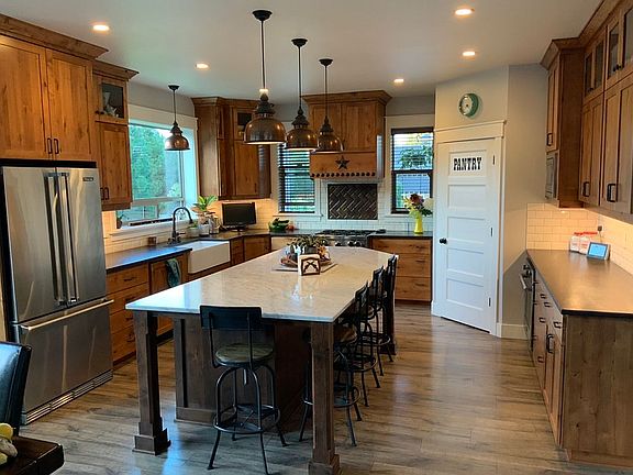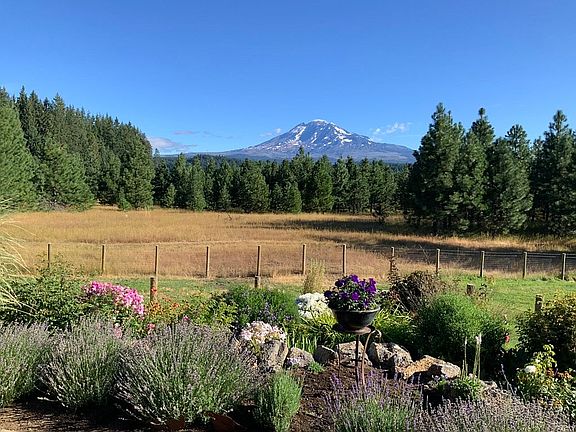 This rustic, high-quality home features a one-of-a-kind Mount Adams view, forever protected by a view easement. There are three bedrooms and three and a half baths. Its designed as a forever home with two master bedrooms, one upstairs and one downstairs which is wheelchair accessible. The oversized kitchen, open floor plan and grand fireplace create a great space to entertain. This home has an attached two car garage, covered front porch and wood storage area. There is a 40x60X14 shop (with 12X60 lean-to) which includes a full bathroom, tack room, horse stall, and large storage loft. Current owners have the property set up for two horses and have two pastures for summer grazing. All landscaping for this property has been professionally designed and features a large garden with raised beds and is fully fenced. There is a custom greenhouse with propane heat, ventilation and a watering system, a potting shed and a chicken coop. Its a two-minute walk to the lake and endless opportunities for hiking and horse riding right out your back door. House will be shown by appointment only. Please follow COVID guidelines.