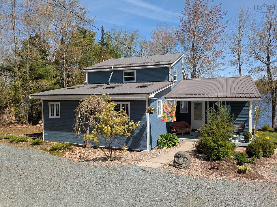 Lakeside Living at Its Finest! Experience the epitome of refined lakeside living with this beautifully landscaped waterfront property, nestled on over an acre of pristine land along the serene shores of Rhyno Lake. Just a short drive from Bridgewater, this exceptional home features a spacious main residence and a charming detached guest cottage, blending timeless elegance with modern comfort and practical versatility. The main home welcomes you with its open-concept design, enhanced by expansive windows and skylights that flood the interior with natural light while capturing breathtaking views of the lake. The thoughtfully designed layout includes two bedrooms, with the primary on the main level; one and a half bathrooms, a well-appointed kitchen, a dining area, a cozy living room with a wood stove, and a versatile loft space ideal for a home office or additional living area. Recent updates—such as fresh paint, a new roof (installed in July 2023), and select new windows and flooring—enhance the home’s appeal and functionality. The separate guest cottage offers an equally inviting atmosphere, complete with one bedroom, bathroom, kitchenette, and laundry facilities (640sqft). A perfect for accommodating visitors or generating rental income. Surrounded by mature landscaping and accompanied by four outbuildings, this private retreat offers ample storage and endless potential. Whether you seek a year-round residence or a seasonal escape, this extraordinary property embodies the tranquility of lakeside living with the convenience of nearby amenities.