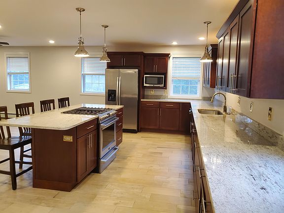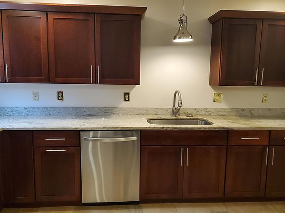 Beautiful 2 bedroom, 2 bath second floor unit that has a large granite kitchen which is open to a spacious dining/living room. The primary suite has its own bath and hardwood floors. Washer and dryer are included. There is also a shared garage, with 1 bay available plus storage over head. The heating system is forced hot water/propane. Tenant pays all utilities. No pets. Delayed Showings until June 10th.