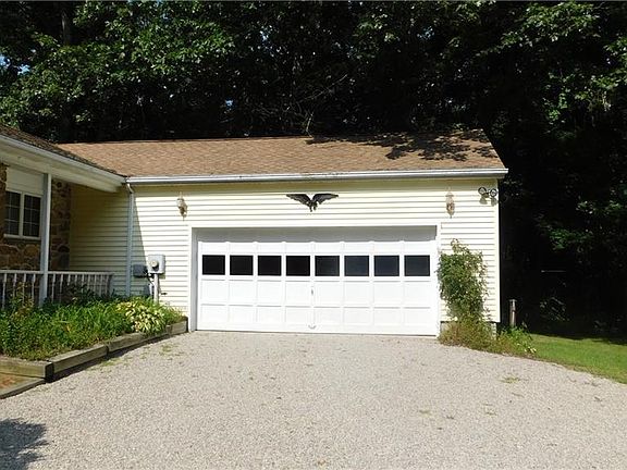 Enjoy secluded privacy in this three bedroom, 2.5 bath ranch with beautiful brick fireplace, hardwood floors, central air, formal dining room, family room with wood burning stove with sliders to back yard, two car garage plus circular driveway which provides additional parking. Added features include vinyl siding, shed, patio and covered front porch. Call today for private showing!