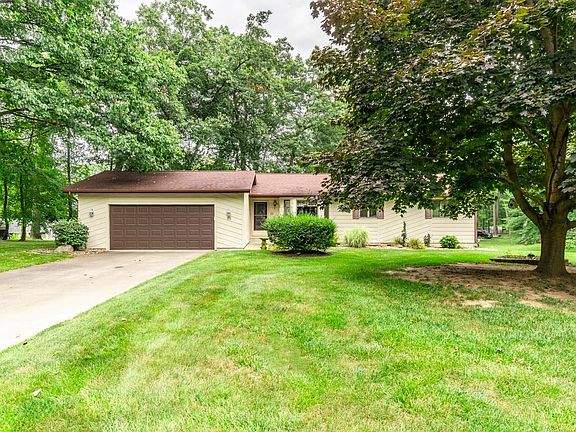 Well maintained ranch style home with 3 bedrooms, 3 bathrooms, finished walkout basement, 2-car attached garage and a 23x30 detached garage nestled on a spacious .86 acre lot close to Crooked Lake. Living room features a bay window, ceiling fan, luxury vinyl plank floor and slate stone floor by the entry door. Kitchen is open to the dining area and overlooks the wrap around deck and backyard. Kitchen updates include a tile backsplash, painted cabinets and the appliances are included. Three bedrooms and 2 full bathrooms finish the main level. The lower level hosts a large family room with a free standing wood stove and walks out to the backyard patio. Two rooms with closets currently used for sleeping, 3rd bathroom, laundry room and a storage room complete the home. Washer & dryer are included. New water heater and water pressure tank installed in 2022. New luxury vinyl plank floor recently installed in the living room, hall two bedrooms and the main level bathrooms. The detached garage is the perfect workshop/mancave with shelving and room for all your tools. Nicely landscaped with mature trees, a fire pit and room for a garden. Selling As Is. Possession at closing.
