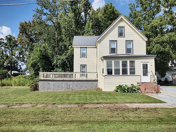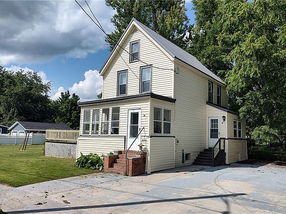 ~ Take Time to Tour This 3 Bdrm., 1 1/2 Bath Colonial Move in Ready, Bright-Crisp Surrounded w Natural Sunlight, Neutral Colors w Great Flow. Enclosed Front Porch Perfect for Relaxing & Welcoming Guests, Generous Sized Living & Formal Dining, Updated Eat in Kitchen w Newer Cabinetry, Stainless Appliances - First Floor Laundry Room and Half Bath. Second Floor w 3 Bdrms. and Full Bath, Walk Up Usable Attic. Great Large Deck Overlooking 0.47 Acres for Outdoor Activities w Room for a Garage. Full Basement, Vinyl Siding and Windows, Metal Roof and Double Concrete Driveway. Centrally Located in Seneca Falls, Walk to Vancleef Lake from Washington Street Feed the Ducks, Bring Your Kayaks. Close to Downtown for Local Restaurants and Shops, Nicely Located !