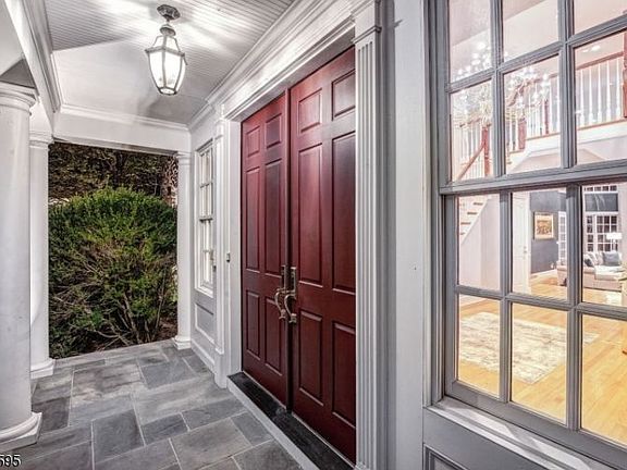Captivating from the moment you cross over the stream and enter thru the private gates. Nestled on 5.03 beautiful acres. Enchanting courtyard, charming side covered porch and columned portico welcomes g uests. Timeless and transitional 17 room, 5 bedrooms, 5 1 2 baths s tone front custom residence BOAsts sprawling floor plan w approx 9000 sq ft of commodious living space, stunning 2-story Great Room, designer Kitchen, spectacular Breakfast Room, Library, Conservatory, luxurious PS w dressing area, HW floors throughout, 4 fpl and blue stone patio. Finished LL w media room, game room, den, fb and private entrance completes this magnificent home. commuter friendly location, award winning school system, min from historical Mendham Center and 287. Desirable taxes. Built-in gas generator.