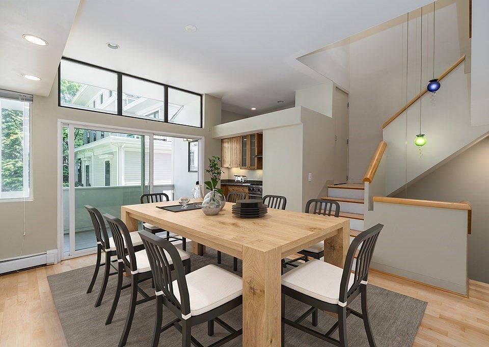 Attached three-level residence with garage parking. End unit, set back from the street with exceptional sunlight streaming from 3 different angles through generous windows & skylight. 3 Beds, 2 full Baths, expansive Living-Dining area & renovated Kitchen with granite counters & birch cabinetry. Enter 1st fl from garage which includes laundry, full bath, Guest Room or Study with 8' sliding glass doors opening to a deck & 500sf private fenced yard with gated access to the association courtyard. One flight up is the dramatic Living/Dining Room with soaring ceilings and tall windows. Wide glass sliders open onto a private, covered balcony. Two ample Bedrooms on the top fl with a stylish Bath in white marble. Self-managed association with healthy reserves. Prime and picturesque Mid-Cambridge location between Harvard and Central squares, within short walking distance to the Red Line, Harvard Yard, MIT, shops, and restaurants. Showings begin at OH, Saturday 6/26 11-1pm. 2021-07-29