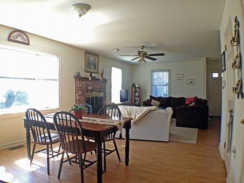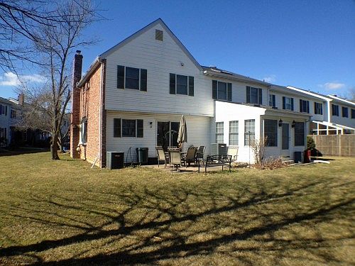 Terrific brick end unit ... away from the maddening crowd. Tucked back-in and very private. Backs to open space. First impressions..notice the new gardens and new front storm/screen door. Generous sized living room with laminate wood flooring, woodburning fireplace and insert; dining area with large bow window creating great sunlight and warmth; eat-in kitchen with brand new sliding glass door to rear FENCED backyard. Newly remodeled kitchen with stainless appliances and new cabinets. 2nd level baths have been updated; laminate wood floors throughout the entire house. Fresh paint - great neutral colors. Ceiling fans in living room, kitchen and master bedroom. PDS to partially floored attic. Association fee includes trash/snow plowing and common areas. Super location; wonderful condition. Very easy to show. Please note: Additional photos coming shortly.
