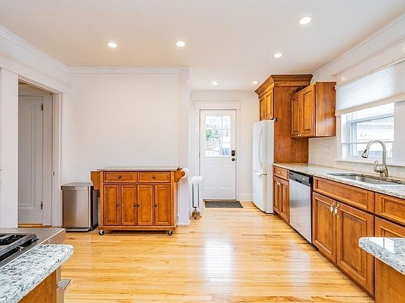 You won't want to miss this remarkable Colonial home in the Highlands of Holyoke impeccably updated with every modern amenity. With gleaming wood floors and freshly painted throughout, the first floor features a spacious living room with a fireplace, formal dining room, and a full bathroom. The beautifully updated kitchen includes granite countertops, new cabinets, professional gas stove, huge pantry, and a bonus wet bar that entertainers dream of. Every room is bright and sunny, but the first-floor sunroom is especially perfect as a den or bonus family room. Head upstairs to find three large bedrooms, a spacious full bath, and a walk-up to the attic just waiting to be finished. A two-car detached garage with automatic door opener and spacious, fenced-in backyard make the outside shine just as much as the interior. No detail has been overlooked--this home is move-in ready and just waiting for you! Be sure to check out the amazing 3D virtual tour of this immaculate home.