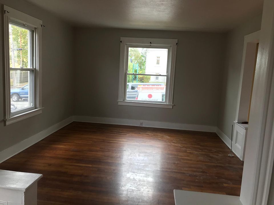 This is a huge apartment with 4 bedrooms, 2 full bathrooms, living rm, dining rm, kitchen , full basement, and walk up attic for storage. Laundry hookups in basement. 1st floor bathroom is being built and is almost done. Owner pays for cold water, sewer, trash pickup