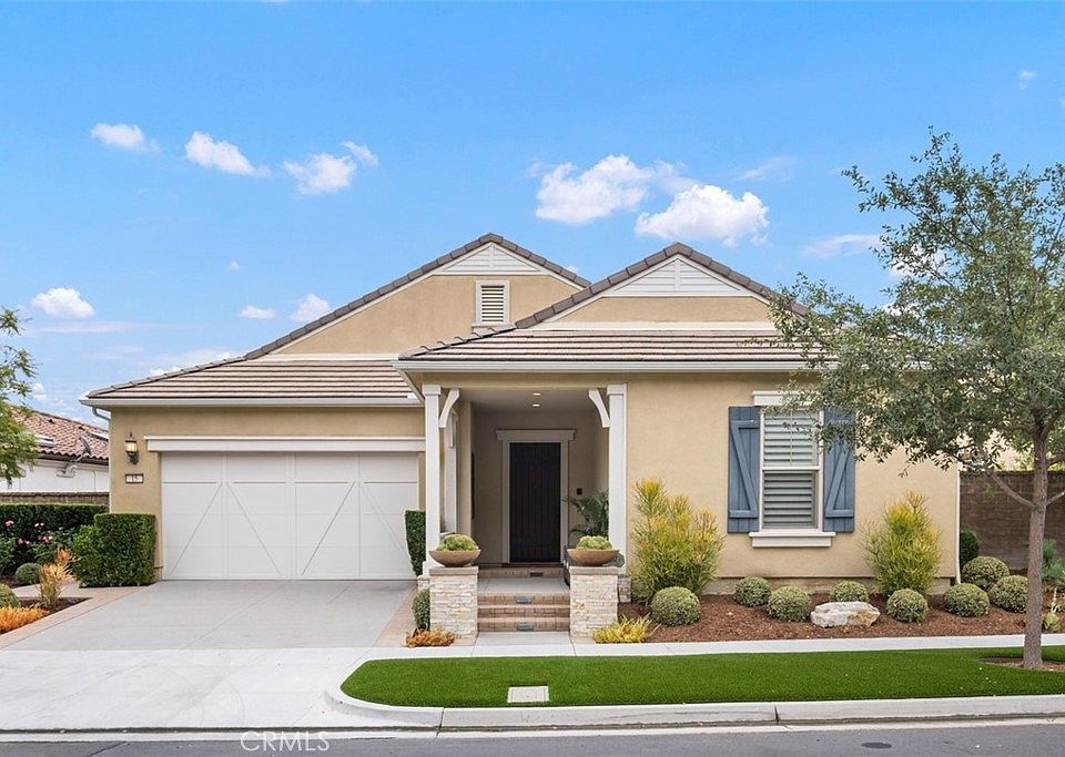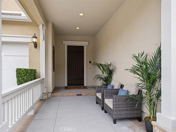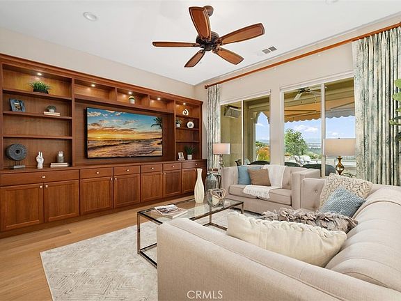 Welcome to the premier view lot residence located in the highly desired active 55+, gated community of Gavilan in Rancho Mission Viejo. This single-level home is highly upgraded throughout and is situated on one of the most desirable single loaded streets, and offers an extended covered front porch, and low-maintenance landscaping. Open floor plan with Hardwood Flooring Throughout, features a great room w/ custom built-in entertainment center w/ lighting, surround sound, beverage bar w/ wine fridge and cabinets. Gourmet kitchen opens to the great room and features large granite island, upgraded stainless steel appliances, large walk-in pantry. From the kitchen you can enter out to the yard through the Bi-Fold Doors, or Slider door to your covered back patio w/ surround sound, ceiling fan, heater, and remote-controlled awnings. Beautiful Formal Dining Room w/ surround sound. Owner’s Suite features multi-slider glass doors out to patio. Luxurious Bathroom w/ soaking tub, stone tiled walk-in shower, dual rain shower heads, stone counters, dual sink vanities, vanity w/ stool and mirror, large walk-in closet. Large Secondary Bedroom w/ Shutters, and ceiling fan. Secondary Bath w/ stone counters, walk-in shower. Third Suite can be used as Office/Gym, or Bedroom and features large walk-in closet, and views of backyard citrus trees. 2-Car Garage w/ epoxy floors, built-in workbench and cabinets, tankless water heater. From the Garage, you’ll be greeted w/ a Bench w/ Built-In Cubbies and Coat Hooks, Laundry Room w/ sink, and hall Guest Bath. Three separate remote-controlled awnings provide extra shade while entertaining and enjoying fabulous views in the yard. Built-in BBQ w/ Sink and bar. Built-in Firepit, turf surrounded by planter beds and a water feature fountain to complement the already stunning views. Large side yards allow for maturing citrus trees and raised garden bed. Upgraded Decorative Landscape Lighting throughout, high efficiency drip irrigation system, custom awnings, surround sound, heater and firepit, and the sound of the custom water fountain create this to be an outdoor space you won’t want to leave. When you do venture out, you can attend any of the planned events and social hours at the Hacienda Clubhouse. You have access to a gym, pool, spa, bocce courts, horseshoe court, and are a short distance to the Pickleball and Tennis Courts. Nestled at the top of rolling foothills in a much-coveted Community, this Upgraded Home is a must see.