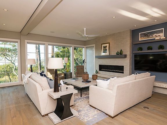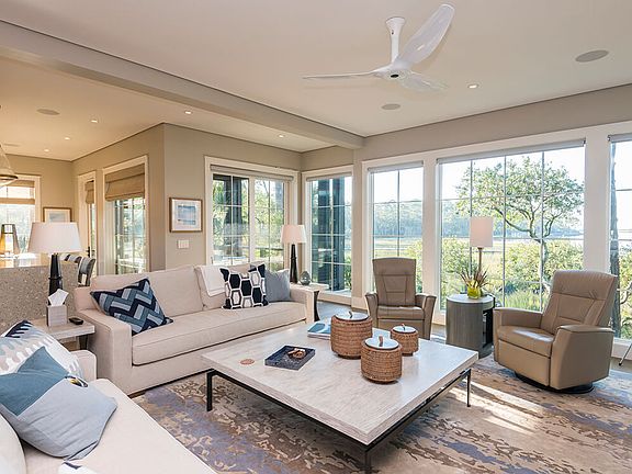 The open, modern home at 15 Little Rabbit Lane enjoys stunning water views, from river to marsh to ocean. - A rarity: designed by Thomas & Denzinger - Located within the private gated community of The Pointe - Open and streaming with natural light through floor-to-ceiling windows - Three separate outdoor entertaining areas awash in river and sea breezes - Access to a private community dock One of the most conveniently located properties on Kiawah, this coastal home is just a stroll from the Island's pristine ten-mile beach, a world-class social and sporting lifestyle at Cassique, and the shopping and dining of Freshfields Village. Impeccably constructed, it abounds in high-end finishes and fine details, from its HardieShingle® exterior and standing seam metal roof to oak hardwood flooring throughout, a propane fireplace, a whole-house Sonos® sound system, an elevator to all floors, and a showpiece of a kitchen with Wolf®, Bosch®, and Sub-Zero® stainless-steel appliances including a custom stove hood and undercounter Sub-Zero icemaker, pale quartz and Vetrostone® countertops, and a center island with breakfast bar. And because this home comes partially furnished, there are also first-class comforts like a stunning home office with Herman Miller® desk chairs, bedrooms with Tempur-Pedic® mattresses and boxsprings, and custom upholstered counter stools. A Kiawah Island Club Social Membership is available with the purchase of this property.