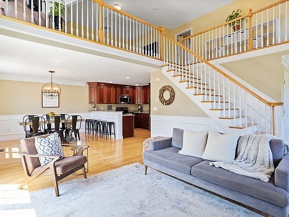 Top-rated schools! Come enjoy all the Harvard center activities, General Store, and Bare Hill Pond! Better than new at sought-after Harvard Commons! Space & style abound in this high quality bright & welcoming home, with gleaming hdwd flooring, vaulted ceilings, large rooms & a flowing floor plan! The main level offers a 2 story living room w/gas fireplace, vaulted ceilings & slider to the sun-filled deck with beautiful easterly views. The dining room is open to the granite kitchen w/stainless appliances & breakfast bar. Convenient first floor laundry & half bath. The serene primary suite has a walk-in closet and spa-like bath. Upstairs, an oversized bonus loft (perfect game room) overlooks the main level w/access to the attic. Large 2nd bedroom with full bath. The walk-out, finished lower level offers an amazing office space with endless possibilities, piping for future bath & ample storage. Central AC, oversized 2 car garage w/custom storage. Quick closing possible!