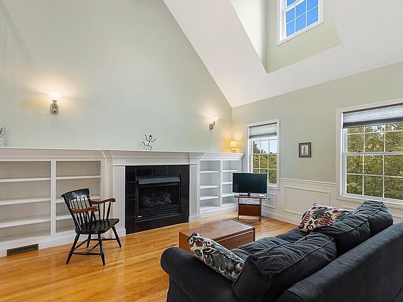 Opportunity knocks to own this young condo within a short distance to all the amenities this quaint location has to offer! Step onto the farmers porch entry & inside the tiled foyer and be greeted by the bright & open living area with cathedral ceilings open to the balcony above. Hardwood flooring, gas fireplace, custom built-in shelves and recessed lighting.The kitchen features granite counters, stainless appliances, tile flooring, island and eat-in area w/ a slider to the peaceful backyard. First floor master with hardwood flooring and full bath with tile floors, dual vanity and built-ins. Upstairs offers a sizable loft space with a variety of functional uses, from a home office to a play area to an additional family room. Relax in the second bedroom and another full bath. New blown-in insulation, oversized two car garage, new hot water heater, newer guest bedroom carpeting. Convenient location with easy access to schools, the town library, pond, General Store and more!