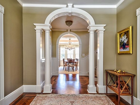 Captivating Country Club Classic set on an amazing half acre lot perfect for entertaining! You will fall in love with this gracious home the moment you step inside. High ceilings, keystone archways, herringbone hardwood. The craftsmanship is amazing! The library, lined with built-ins, banquet sized dining room with sparkling crystal chandelier and fireplace, large light filled family room with fireplace and grand living room perfect for holidays! Sunlight streams in the all-white and stainless eat in kitchen with access to mahogany deck overlooking the backyard. The grand staircase leads to the master suite with dressing room and the master bath, 3 additional bedrooms and 2 full baths round out the second floor. The third floor has a 5th bedroom or home office possibility. The lower level with the mudroom, full bath, and rec room is direct entry to a 2 car garage with additional 2 car detached garage. The backyard can accommodate fire pit and pool for outdoor enjoyment.