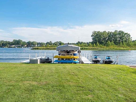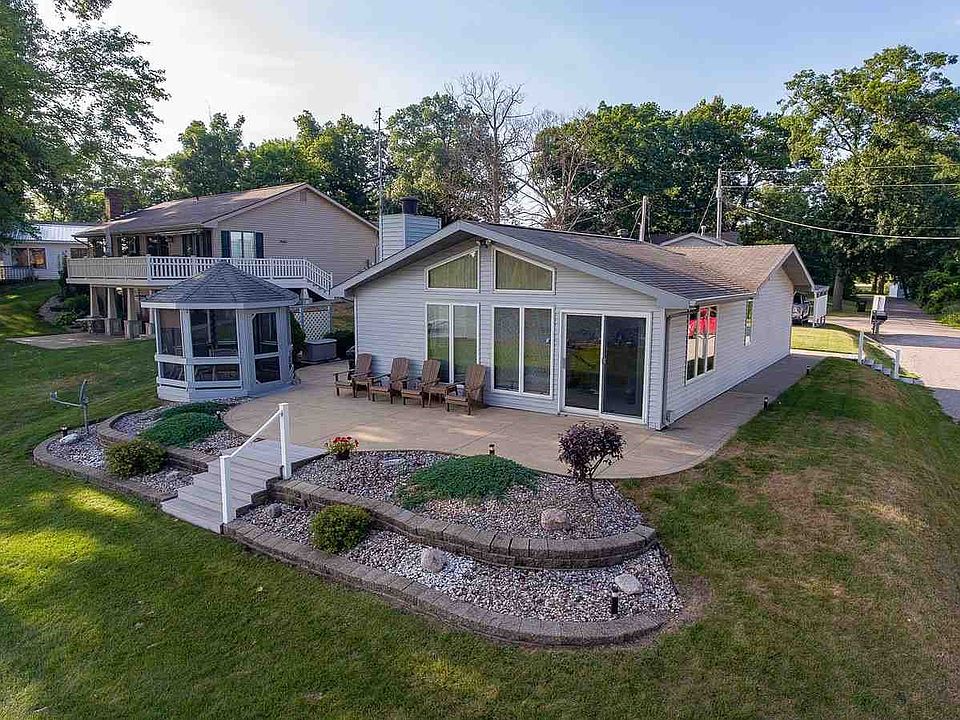 Immediate possession available. This is the one! A rare find! A lakefront property on Jimmerson Lake with 70 Feet of level frontage. A one story home that was remodeled including an addition in 1994 with a super-sized great room, cathedral ceiling, a fireplace with stone surround, a wall of windows to enjoy the lake views, sliders to the lakeside patio and is open to the dining area and kitchen. Kitchen has a breakfast bar, large pantry closet and all the appliances are included. The fireplace is wood burning with a gas connection for igniter or gas log and currently has an electric insert. Three bedrooms, 2 bathrooms, a utility room and a laundry closet with stack washer/dryer complete the home. All the bedrooms have ceiling fans and the master bedroom includes a safe and sliders to the lakeside patio. The utility room contains a Kinetico dual water softener and a water heater new in 2015. The lakeside patio provides lots of outdoor living space and leads to a screened gazebo with electricity, ceiling fan and speakers. A spacious and level lakeside yard with concrete seawall. Two maintenance free Brock piers are included and are conveniently left in year round. Your imagination can go wild in the 12x10 man-cave/she-shed with electricity, heating and cooling. A small storage shed is also included. The 2 car detached garage with workshop is heated with an upper level that is completely floored. The garage shelving, cabinetry and fireproof safe are included. There is also a carport with metal roof. The propane tank is owned and buried. This property is located in a great neighborhood with boat launch access. Some furnishings are available to purchase outside the sale. Aerial of the property: https://youtu.be/uUFYw_N1-JI