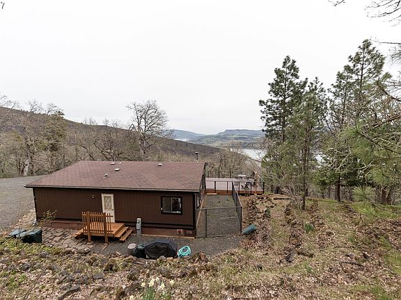 Amazing views: Columbia Rv & Mt. Hood. Fabulous 5 acres; out the door hiking/biking/river activities. Replacement dwelling has approval for sellers; Buyer to do all research themselves & not to rely on seller's documents as they would reapply. Open floor plan: cozy wdstove, newer elec. furnace, laminate floors & a fabulous deck. Community well. Full time or amazing vacation home! Great driveway access of forest service land! PRIVACY!