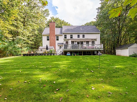 DREAM 4-bedroom BRICK FRONT colonial on private, nearly 3-acres! Exquisite property offers thoughtful details designed to cater to your every need. As you step inside, you’re greeted by a spacious fam rm w/ VAULTED ceilings, perfect for entertaining/cozy nights in. Kitchen boasts a large island, eat-in area w/ WINE CHILLER. Adjacent to kitchen is a huge dining room, ideal for hosting special occasions.Main level also includes bath w/ laundry, & an office w/ FRENCH DOORS. Upstairs, you'll find 4 bedrooms, incl a newly renovated main & 2nd bath.Finished walk-up 3rd fl offers addl versatile space, perfect for home gym/playroom/guest suite. For movie enthusiasts, a MEDIA ROOM complete w/ gas fireplace & projector! Step outside to enjoy the expansive TREX deck & patio, perfect for outdoor gatherings & summer BBQs.The property also includes a newly paved driveway, shed & spacious 2-car garage w/ new epoxy fl.Lower level IN-LAW suite, w/ bathroom, laundry, kitchen, & 2 beds- separate entry!