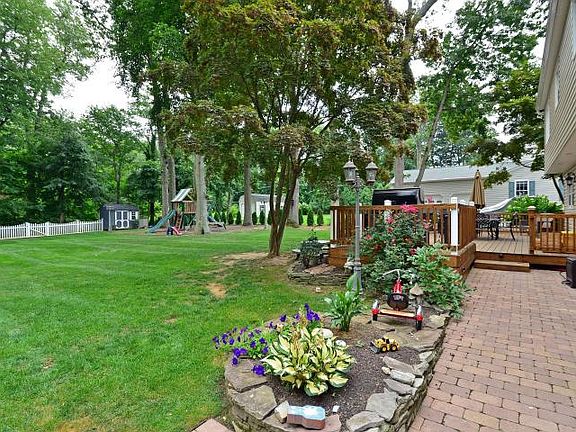 Nothing to do but unpack! Beautiful 4 BR 2.5 bath with newer paver walkway, newer porch, newer windows, newer siding, newer roof, underground sprinklers, backyard deck, 2 sheds, childrens play area on professionally landscaped lot. The inside is as desirable as the outside with newer AC and heating systems, high tech camera security system 3 newer bathrooms, newer kitchen with granite countertop, SS appliances, double oven, mosaic tile backsplash, ceramic tile wood floor. There are HW floors and recessed lighting and fresh paint throughout the home. A woodburning fireplace, walk up stairs to attic. Every closet in home has custom built ins. The garage has ceramic tile flooring, LED recessed lighting, its own heating system and custom built storage closets while still being able to fit 2 cars. This house is for sale by owner. If you are interested please call 347-671-2419