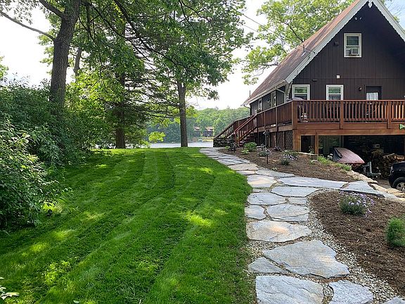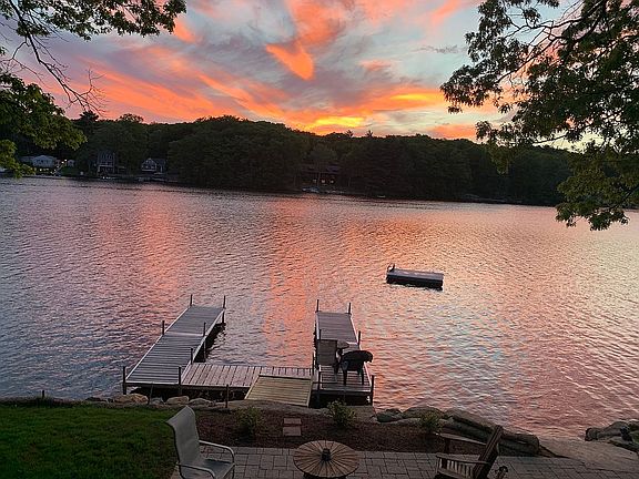 RARE, HUGE LOT ON CEDAR LAKE, WATERFRONT WITH PRIVATE PENINSULA. This is a truly unique property located on a private peninsula at the end of a dead end road! Breathtaking views from almost every window. This year round home features 3 bedrooms, 2.5 bathrooms, large living room with sliders to the wrap around deck. Watch the sunset from a amazing remodeled and stunning sunroom. Newly remodeled basement for additional beds, game room, laundry and storage! The expansive yard is surrounded by water on 3 sides featuring a new stone patio and fire pit, rocks steps right into the water, a private boat launch, sandy beach, stone fireplace, outside changing room and bathroom! Your own large 3 slip dock makes it easy to enjoy your power boats and jet skis on fully recreational Cedar Lake. New roof, refinished wood floors, new bathroom, a fresh coat of paint inside and out, and updated kitchen! No thru traffic, located at the end of a paved dead end street. Amazing commuter location just minutes to the Mass Pike and Rt 84 in Sturbridge! Easy to show.