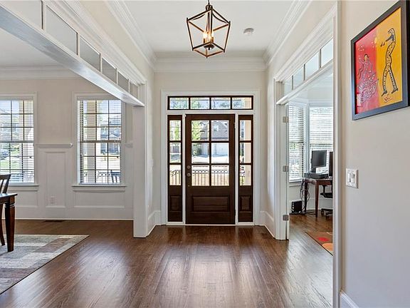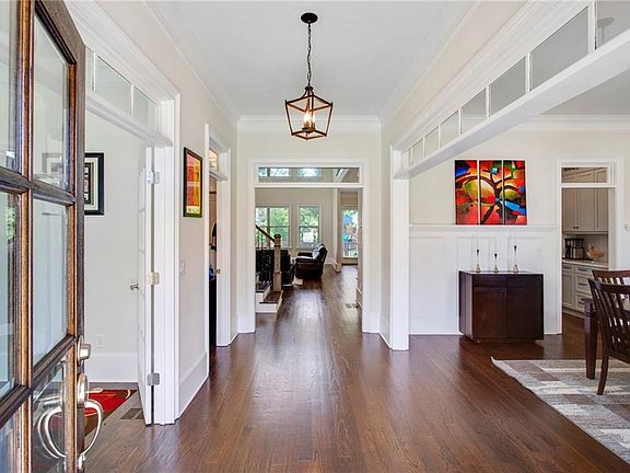 Recently built 5BR brick home in wonderful neighborhood walking distance to the new Sandy Springs City Center! This move-in ready executive home has a well thought out floor plan with 10' ceilings on main, and an abundance of natural light. The spacious chef's kitchen with a beautiful appliance package offers ample countertop and cabinet space along with a walk-in pantry and a butler's pantry. The kitchen is adjacent to a breakfast area and a light filled two-story family room for the perfect flow. Also on the main level is a formal dining room, a home office/living room, a guest suite and a mud area. Owner's suite plus two bedrooms with private baths on the upper level along with a laundry room. Third level offers a large 5th bedroom with full bath that also makes an incredible playroom or bonus room. Owners did an amazing job finishing the basement which includes a full bar, a home theatre, a recreation room and a home gym. The backyard is level with room for a pool plus it has a wonderful deck for outdoor dining. Located on a quiet street a short walk to the community pool and to the shops and restaurants in Sandy Springs!