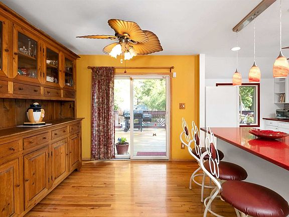 Beautiful Well Maintained 5 Bdrm 2 Full Bath Hi-Ranch located on lovely landscaped property on quiet street. Hardwood floors & recessed lighting. EIK w/island & open floor plan leading out to spacious second story deck overlooking sprawling flat yard with IG Heated Pool & Koi pond with waterfall. New roof & updated electric. Poss mother/daughter! Perfect yard and deck for recreation and entertaining!
