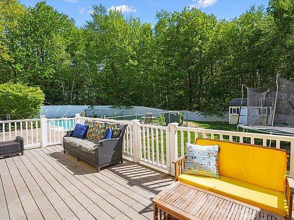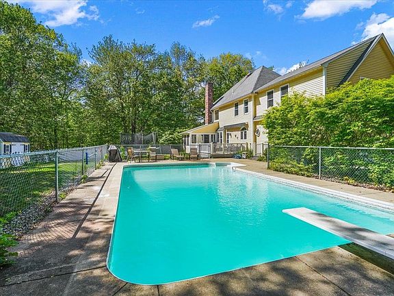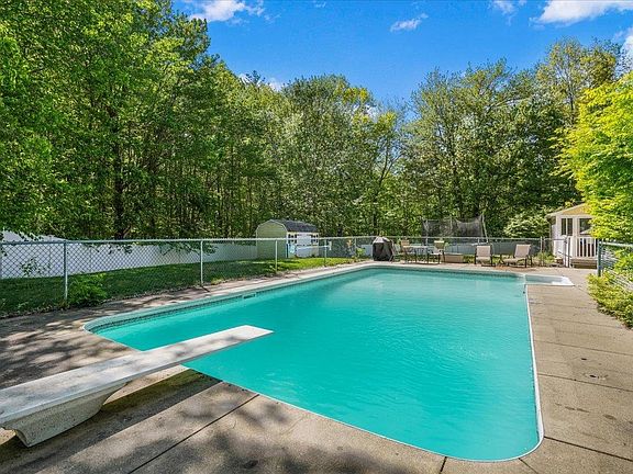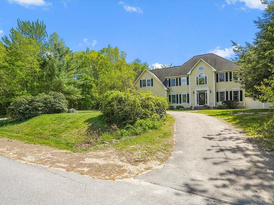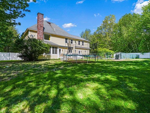 Located in a highly sought after and established Bow neighborhood. This 4 bedroom, 3 bath custom Colonial is situated on a 2.17 acre private lot surrounded by trees and nature. Head through the front door where you are greeted with a two-story soaring ceiling, a spacious layout, and gleaming hardwood floors. Here you have the gorgeous sun-filled foyer with a beautifully detailed dining room to your left and flex space to your right. This area is perfect for a first floor home office complete with French Doors leading into the living room. Heading into the heart of the home, you have a large open-concept gourmet eat-in kitchen with granite countertops, cherry cabinets, a large center island, and a living room with custom built-ins and a fireplace. This space has direct access to your three-season porch leading out to the back deck, IN-GROUND POOL area, and FULLY FENCED yard with a shed and plenty of storage! Just off the pool area you an additional entry/exit into into the tiled mudroom area off the kitchen. Here is your FIRST FLOOR LAUNDRY, direct access to the oversized TWO STALL garage, a half bath, and second staircase leading upstairs. Heading up, you'll find 4 generously sized bedrooms, a full bath, a flex space which could serve as a great second office or play area, and Primary Bedroom Suite! The primary suite includes a large walk-in closet and bathroom with a step-in shower, jacuzzi soaking tub, and dual sinks! NEW flooring 23', NEWER appliances, fence, & painting 21