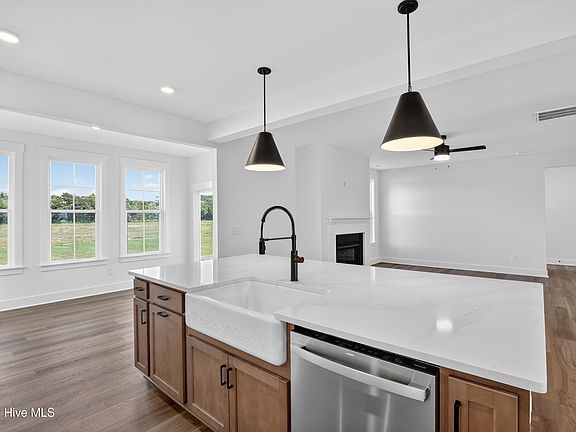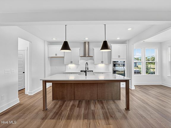Welcome to 15 Lookout Point, located in one of Hampstead's most desirable gated waterfront communities. This beautifully designed new construction Nottely plan offers 2,626 square feet of thoughtfully crafted living space with 5 bedrooms, 3.5 bathrooms, and a refined blend of comfort and coastal style. Set on one of the community's largest homesites at 0.33 acres, this home features a 3-car garage, offering ample space for vehicles, storage, or golf cart. Inside, 9-foot ceilings on both the first and second floors enhance the home's open and airy feel. A versatile flex room with coffered ceilings provides the perfect space for a formal dining area or home office. The well-appointed kitchen includes a butler's pantry, ideal for entertaining and additional storage. The main living areas showcase an open-concept layout filled with natural light, centered around a natural gas fireplace that creates a warm and inviting atmosphere. Just off the living space, the sunroom offers a peaceful retreat to enjoy year-round. A first-floor guest suite provides comfort and privacy for visitors, while a spacious upstairs bonus room offers flexibility for a media room, playroom, or additional workspace. The primary suite is a true retreat, featuring double walk-in closets and a 5-foot tiled shower and frameless glass enclosure. Outside, double front porches add timeless coastal charm, perfect for morning coffee or evening relaxation. Located just steps from the Intracoastal Waterway, residents enjoy access to a community day dock with kayak and paddleboard launch. With an estimated completion of Spring 2026, this exceptional home offers a rare opportunity to own new construction in a premier waterfront setting. Schedule your private tour or call to learn more today!