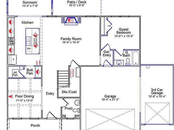 - Room types: Living Room, Dining Room, Sunroom, Bedroom 1, Master Bedroom, Bedroom 2, Bedroom 3, Bedroom 4, Bonus Room, Laundry