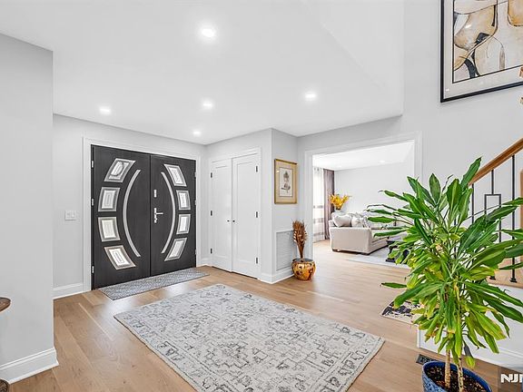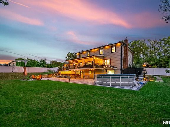 Fully renovated Center Hall Colonial in the coveted Dey Hill section of Totowa. This stunning 5-bedroom, 3-bath home sits on a private property with new driveway and a spacious backyard featuring a Trex deck, covered patio with custom lighting, gas fire pit, Cambridge pavers, and new fencing. Inside, find a bright modern interior with white oak hardwood floors and a wood-burning fireplace. The gourmet kitchen offers KitchenAid appliances, induction cooktop with convection oven and microwave, granite waterfall countertops on the island and dry bar, and garbage disposal. A rare 1st floor bedroom and full bath add versatility, with the bath featuring heated floors, Geberit toilet, and floor-to-ceiling porcelain tile. Upstairs offers 4 bedrooms, including a serene primary suite with WIC and en-suite bath, plus a hallway bath with double vanity. The basement expands the living space with a rec room, prep kitchen, tool room, laundry, storage, and sliding doors to the backyard. Additional upgrades include European double entry doors, shaker cement siding, new windows, gutters, 4-zone gas heat, dual-zone AC, Nest thermostats, 2-car garage with epoxy floors, and Google security cameras. A rare opportunity to own a move-in ready, fully modernized Colonial in one of Totowa's most desirable neighborhoods.