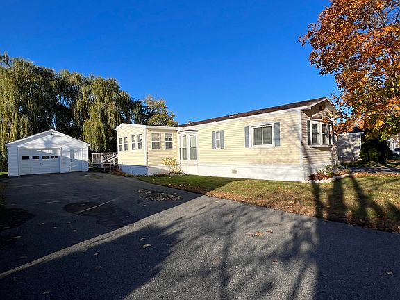 Enjoy a peaceful lifestyle in this nicely maintained single wide ranch....one floor living! Two bedrooms, each with private bathrooms. Built-ins in living room and dining area. New Heat Pump to keep the air warm, dry or cool....whatever the season. Sunny 3-season porch. New tiedowns being added. Excellent oversized 1-car garage with plenty of extra space and storage. Nothing to do but move in!