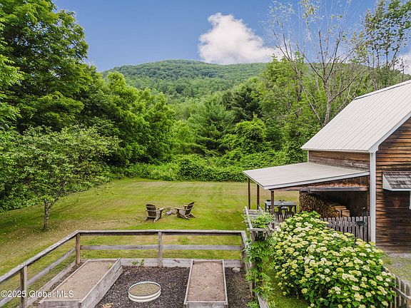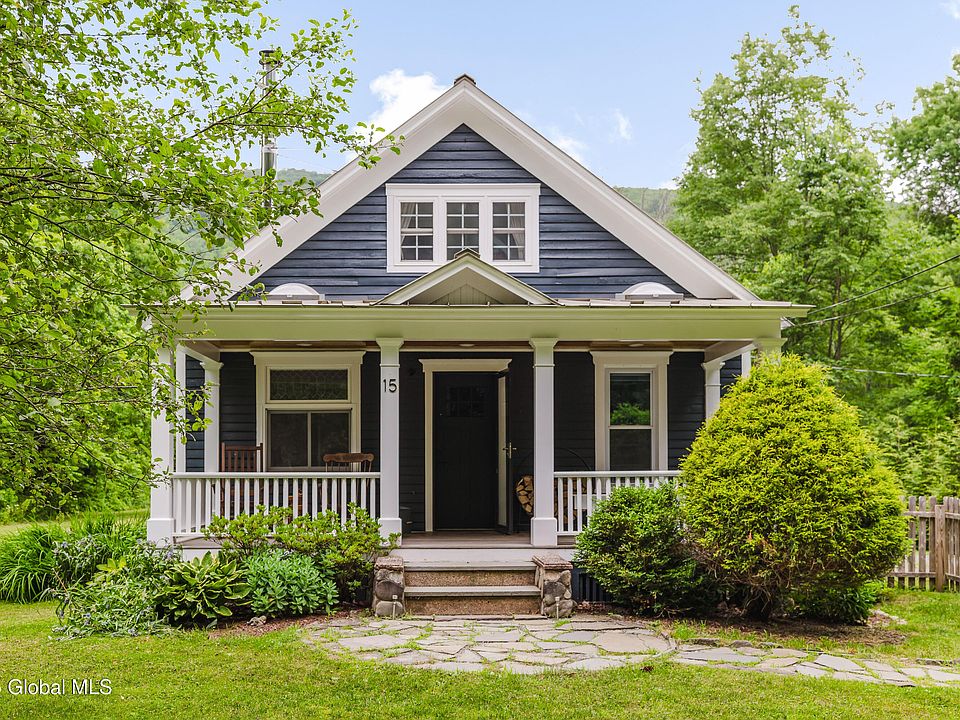 Welcome to Ainslie Bungalow, a 1920s Arts and Crafts Homestead on a country lane, set against a backdrop of evergreens and mountain views. Original hardwood floors, restored trim, and vintage details are paired with updated baths and a new energy efficient wood-burning stove. A finished lower level adds flexible bonus space, and a barn with a full second story offers potential for future studio or guest space. This storybook property feels like a hidden cove, with fruit trees, raised garden beds, and a cedar hot tub for restorative soaks under the stars. Secluded but not isolated, the home is near Belleayre, Phoenicia, and some of the Catskills' best dining and hiking, with a NYC bus stop conveniently located at the end of the road.
