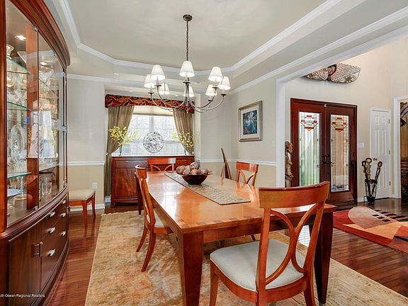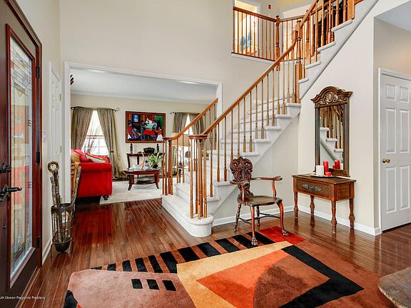 Gorgeous, light-filled 5 bed/ 2.5 bath center hall Colonial in desirable Seven Oaks. Grand 2-story foyer with double-doors welcomes you. Hardwood floors lead you through living & dining room into the sunken great room which opens to the beautifully updated eat-in kitchen which features SS appliances, cherry cabinets & center island. From here step through sliders to multi-tiered, maintenance-free deck and out to your resort-styled backyard. The pool, cabana, landscaping & lighting have to be seen to be believed. The 1st floor also features a bedroom/office & half bath. On 2nd floor, master suite features a large bath, vaulted ceilings & huge WIC. Plus, finished basement for additional entertaining and relaxing space.