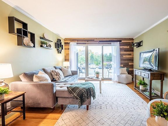Convenience meets affordability in this cozy, sun filled corner unit. Two bedroom single level living offering updated eat in kitchen with tons of granite counter top space, stone back splash, breakfast bar, and gas range. Open concept living room area with gleaming hardwood floors and charming ship lap accent wall ready for entertaining guess! Sip morning coffee, crack open a good book, and take in the crisp fall air on the private balcony. Enjoy the leisure of laundry room in facility, as well as the many shops and dining stops all within reach. Newer roof, heating system, and heat included in your monthly condo fee make this unit a win! Located right on Route 28, easy Route 128 and 93 access!