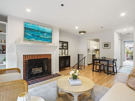 Well located in the gas light district, near City Square Park and town center restaurants and shops, this stunning 2BR/1BA condo offers a sunny southwest exposure, two spacious levels of living, 925 sf, and a private deck. The entry floor offers a bright and airy living/dining room with a wood burning fireplace with handsome mantel, and built-in shelving. The updated kitchen features white cabinetry, quartz countertops, stainless appliances, and an elegant subway tile backsplash. A modern sliding barn door opens to the king size primary bedroom with an enormous walk-in closet, and egress to the deck. The primary bedroom is serviced by a well-appointed full bathroom with tub featuring a large vanity, sconce lighting, and tiled floor. The lower level offers a roomy bedroom with space for an office area, large walk-in closet, built-in shelving, and recessed lighting. Amenities include: C/Air, W/D, professional management, additional private storage, and newer systems.