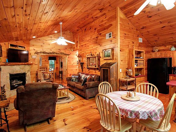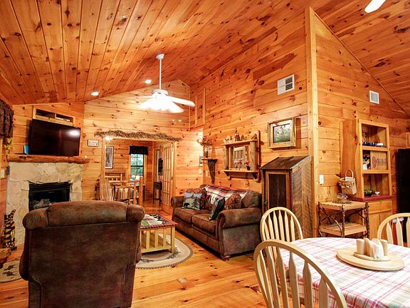 Best way to describe this cabin is oh yeah . . . . All one level with two bedrooms and two full baths, vaulted wood ceiling gives the great room a huge open feeling, wood flooring through out. Nice open kitchen layout with plenty of room for working. Double french doors leading out onto the wonderful covered and screened in porch with tongue and groove ceilings overlooking a private front yard with fire pit and room for sitting out under the stars. All paved road access in a lovely neighborhood with fiber optics! Come quick.