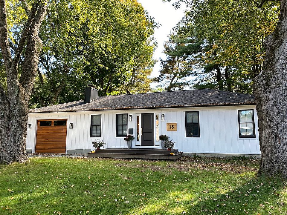 Rhinebeck Village One story ranch 1200 sq ft, 1/3+/- acre 3 bedroom, 2 Full Bath Open concept living room & Eat in kitchen Main Level Laundry Room 1 car garage Storage Shed Full basement