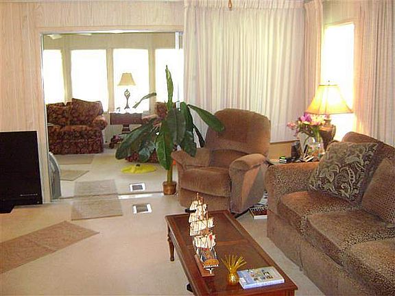 This community has a lovely country setting with lots of tree shade. Fully furnished and ready to go...Everything is here for you including the dishes, pots, pans etc...Huge open plan with 2 bedrooms and 2 baths. Large open living and dining area with sliders that open to the Florida room. The kitchen has a breakfast nook and new counter tops. The large master suite has a dressing area and a full bath. Enjoy the breeze on the screen porch while reading a great book. Very convenient location! Over 700 homes available at http://www.fourstarhomes.com
