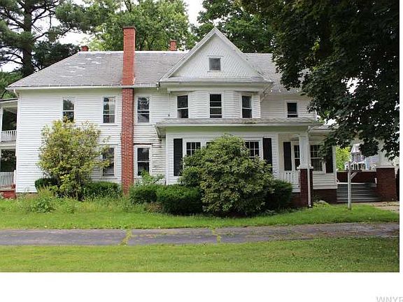 This home could be glorious again! Located on nice neighborhood street has deep lot. Hardwood floors under most carpet. Lots of room here. Roof leak has caused some upstairs interior ceiling damage. The upper portion of roof has been replaced by a local contractor. Has been winterized, electric is on. Garage in need of roof repairs as well. Needs tlc.