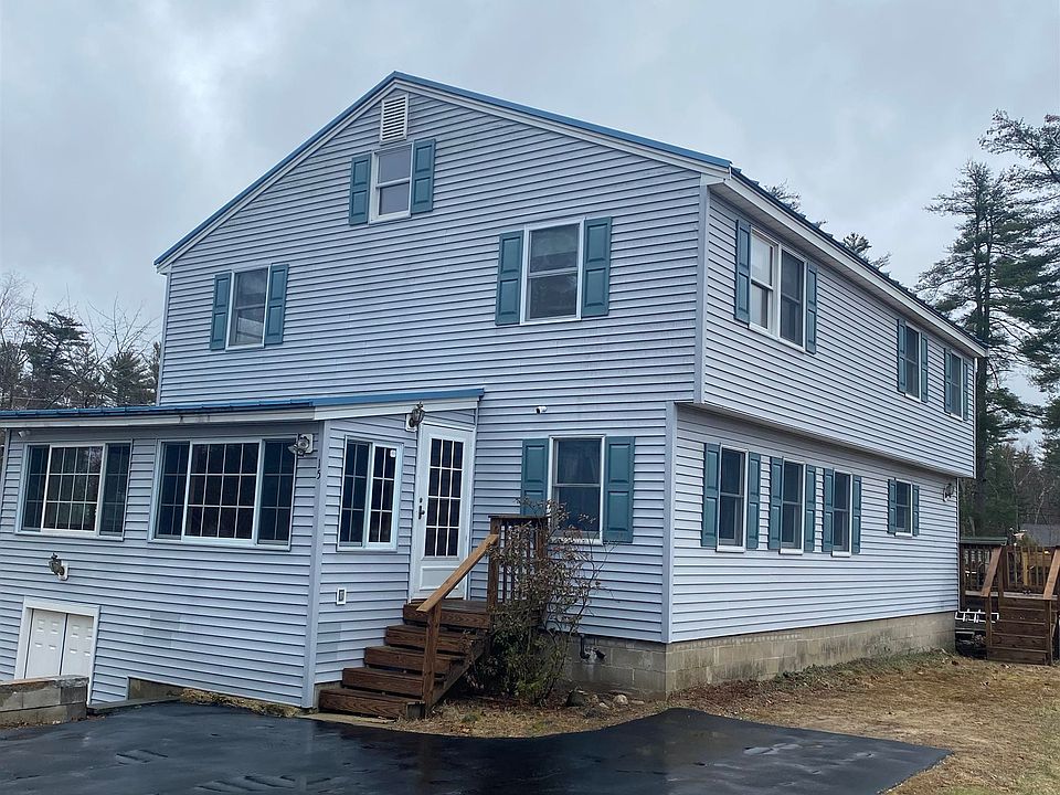 The price of this conveniently low-maintenance home has recently been adjusted. Featuring a durable metal roof, vinyl siding, and a recently installed heating system, it's primed for a hassle-free move-in. Enjoy the spacious 20 x 40 in-ground pool, perfect for summer relaxation. Additionally, this property boasts two deeded rights of way to Country Pond, offering scenic bedroom views of the water. Plus, it's just a brief stroll away from a private beach. This house was renovated in 1989 and 1996 with an open floor plan and second floor bedrooms. The Primary bedroom is expansive and features two walk in closets. Wall to wall carpet has been newly installed on the upper floor. Enter the home through a charming three season enclosed porch and into a home that boasts, oak floors and pellet stove in living room and a spacious kitchen/dining area with newer stainless steel appliances and a space that explodes with natural light from the large bay windows. Enjoy ice fishing and snowmobiling on Country Pond in the winter while water sports during the summer months. Basement has a walk out making easy access for those kayaks and fishing equipment. New shutters recently installed (see before & after pics). Pool liner and filter were replaced 2 years ago. Easy to show!