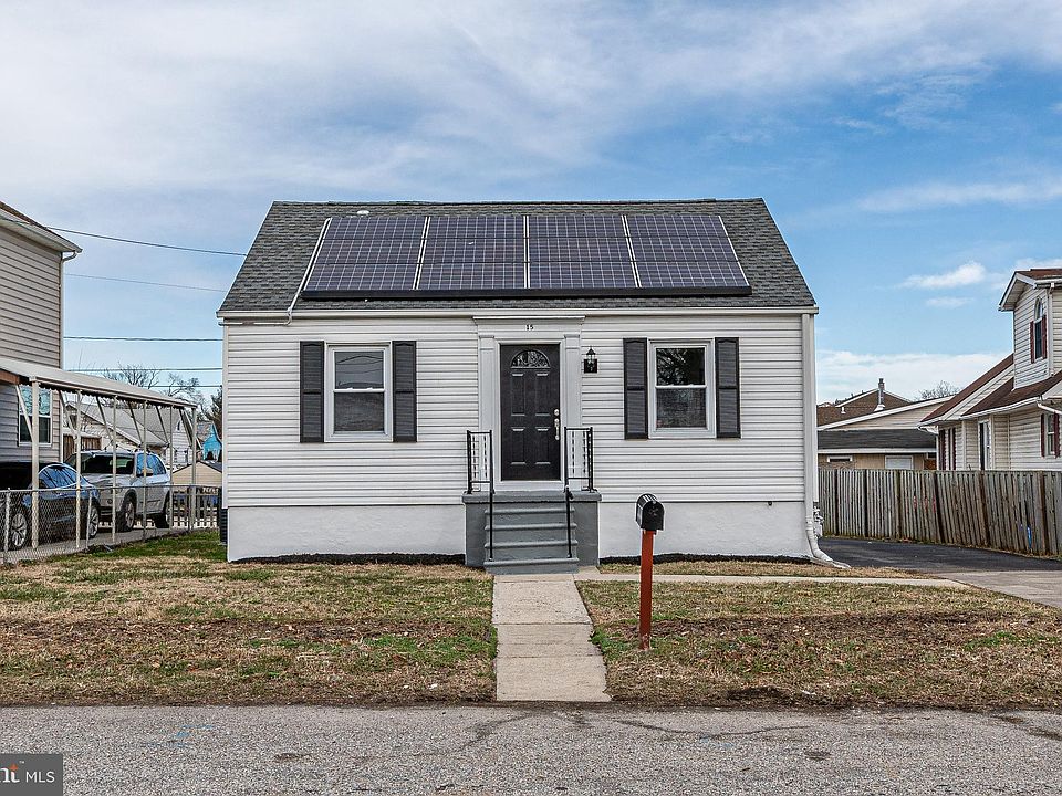 Check out this amazingly renovated cape cod that is just steps from the Back River in Essex with close access to Eastern ave! The main level features beautifully refinished hardwood floors, a kitchen / dining combo room with herringbone tiled flooring, grey shaker cabinets, quartz countertops, a custom marble backsplash and all new stainless steel appliances! 2 spacious bedrooms and a stylish full bathroom with tiled walls all the way to the ceiling! Head down to the wide open finished basement with exposed ceilings and new berber carpet installed.Use it as either a 3rd bedroom or bonus family room! The 2nd full bathroom features 24" x 24" carrara tile floors and diagonal subway tile all the way around the shower walls. Head to the top level to view the bonus finished attic room that could be used as a kid's playroom or bedroom! A New hot water heater and a natural gas powered furnace have also been installed. The exterior features a fantastic lot with a generous sized rear yard. A detached garage with working electric. A long driveway that can park up to 3 vehicles. And a rear deck perfect for lounging or entertaining on. The solar panels on the roof are being sold AS-IS. The solar service is currently inactive through a company called "SUN RUN". The buyer can either contact "SUN RUN" to activate the service, have them remove the panels, or leave them on the roof.