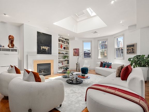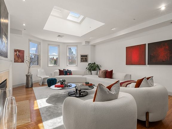 Exquisite Penthouse residence located on the coveted 1st block of Marlborough St neighboring the iconic public garden in Boston's Back Bay. Crowning an extra wide historic building on the sunny side of the street, this direct elevator access home consists of approx. 2,220sf of floor through living across 3 beds & 3.5 baths. An oversized chef’s kitchen w/ top-of-the-line appliances, stone countertops & custom cabinetry overlooks the open concept living space w/ a large four window skylight, gas fireplace, hardwood floors, & custom built-ins. The primary suite boasts a generous walk-in closet, built-in wardrobes, as well as an en-suite, four-piece marble bath. Enjoy direct access to an expansive private roof deck oasis w/ 360-degree city views & 2 garage spaces.