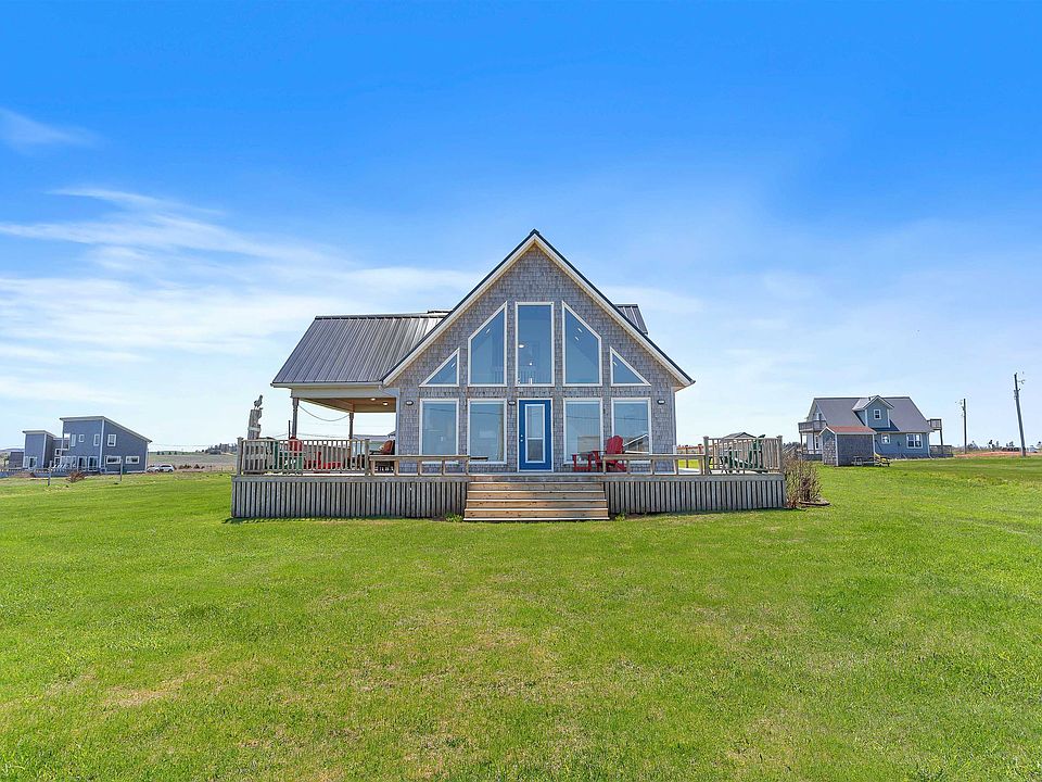 Welcome to 15 Marram Lane! A Refined Coastal Escape in Sought-After Sea View, PEI. Experience elevated coastal living at this beautifully designed 1,820 sq. ft. cottage, ideally positioned on a manicured 0.66-acre lot in the prestigious seaside community of Sea View. With sweeping water views, elegant finishes, and a seamless blend of comfort and style, this turnkey retreat is the perfect place to unwind, entertain, and create lasting memories. The inviting wrap-around porch and coastal boardwalk lead you into an expansive outdoor oasis ideal for family fun or tranquil relaxation. The landscaped grounds offer plenty of space to enjoy the fresh ocean air, featuring a childrens swing set, two well-maintained outbuildings (10x12 and 6x8), and room to gather under the island sky. Inside, the home is filled with light and warmth. A cozy propane fireplace anchors the spacious living area, while the open-concept layout connects seamlessly to the well-equipped kitchen and dining space ideal for hosting guests or simply enjoying everyday moments. Two main-floor bedrooms offer privacy and convenience, and upstairs, a spacious primary suite provides a peaceful retreat, complete with serene views and thoughtful details. This property has seen several recent upgrades, including a durable new steel roof on both the cottage and sheds, and a modern heat pump to enhance comfort throughout the seasons. With iconic views of Sea View Rock and stunning sunsets visible from your deck, every day here feels like a postcard. Located just steps from Branders Pond Beach and close to renowned golf courses, restaurants, and the charm of PEIs North Shore communities, this is an extraordinary opportunity to own a refined coastal property in one of the islands most desirable locations. Whether you are looking for a serene family getaway, a stylish space to host and relax, or an investment in one of PEIs most scenic regions, 15 Marram Lane offers it all.