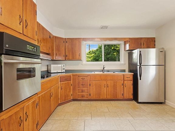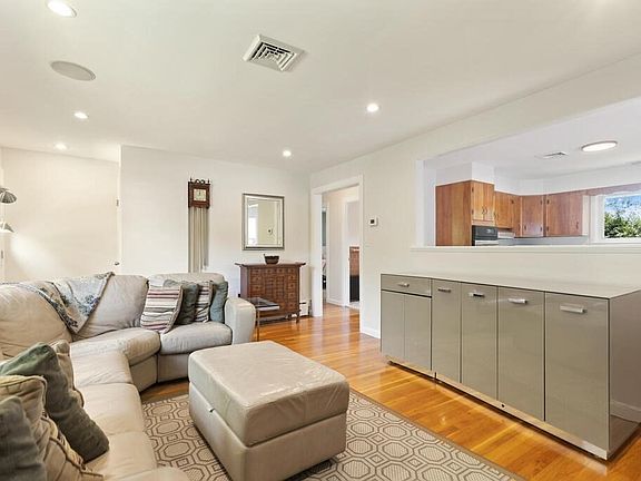 Location, location, location! Well cared for Ranch in North Revere, last house on a dead end street, located on the Saugus line. Easy commute to Route 1 and adjacent to the Northern Strand rail/bike trail and Harmon park, this wonderful, well cared for home has many updates including freshly painted interior, new interior doors, newer windows, appliances, new sewer hookup and bathroom renovations. Living room with fireplace and recessed lighting. This wonderful, one owner house, has a walk out basement with more finished living space with a wood stove/fireplace and wine cellar. Heating, roof, vinyl siding and electrical all updated. Alarm system and two zone central air with heat pump for supplemental heating. Large private lot and a fenced in area is perfect for a pet or childs play area with more lawn in the large rear yard. Currently has oil heat but there is gas available in the house. More improvements and updates on list uploaded in MLS. Immaculate condition.
